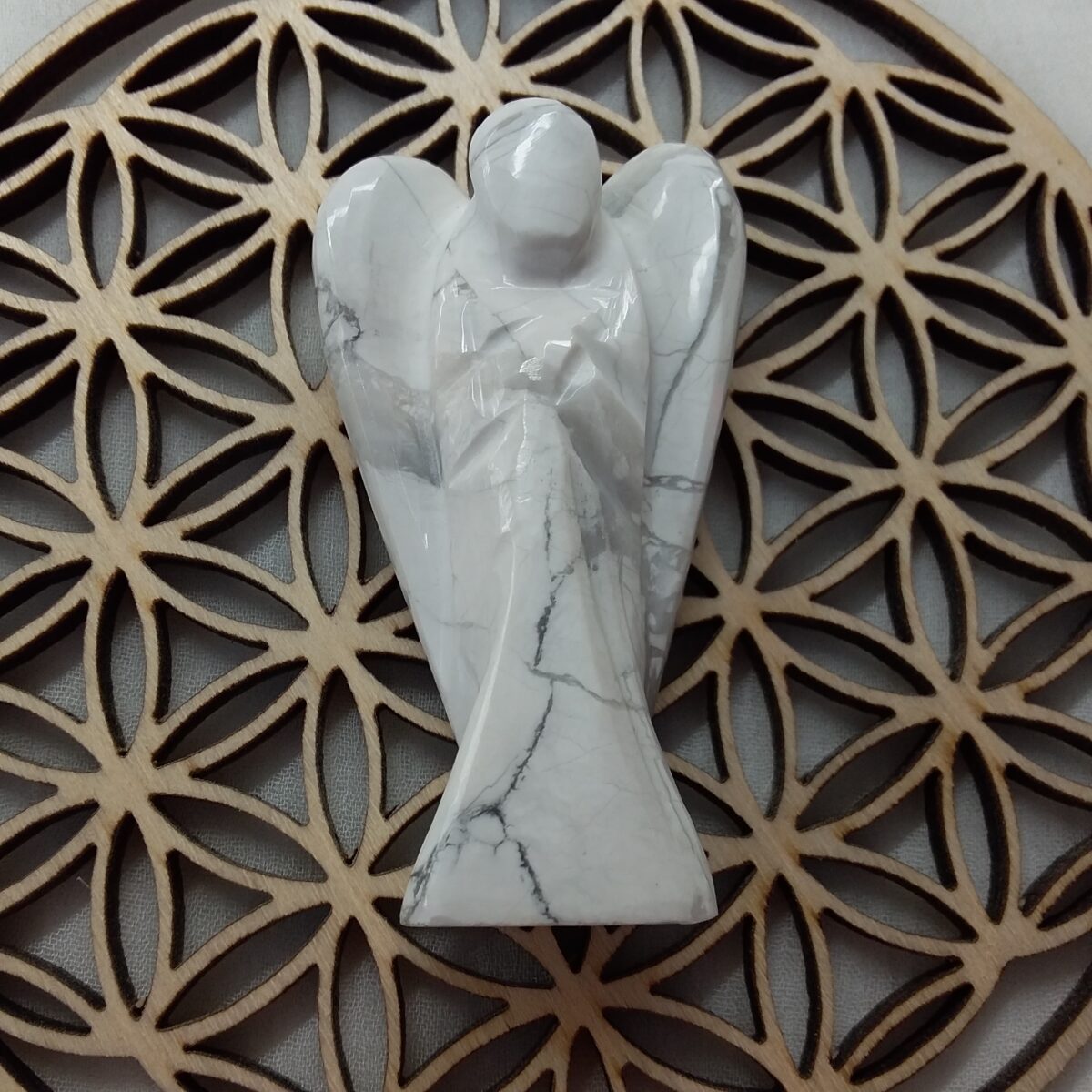 Ange howlite. Calme, apaisement, patience, sagesse, équilibre, sérénité, tolérance, sommeil, clarté, compassion, détente..