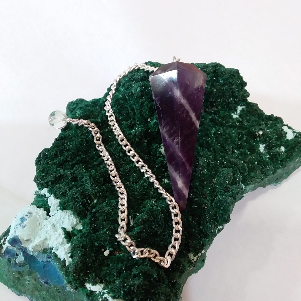 Pendule améthyste. Protection, sérénité, intuition, sagesse, équilibre, paix, purification, spiritualité, concentration, sommeil, tempérance..